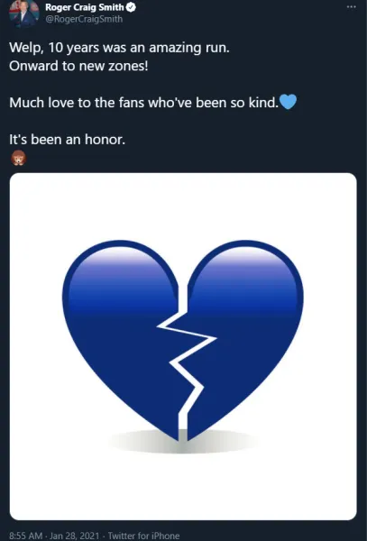 "Welp, 10 years was an amazing run," Smith said in a tweet this morning. "Onward to new zones! Much love to the fans who've been so kind. 💙 It's been an honor. 🦔"