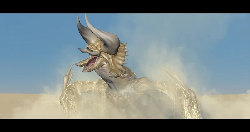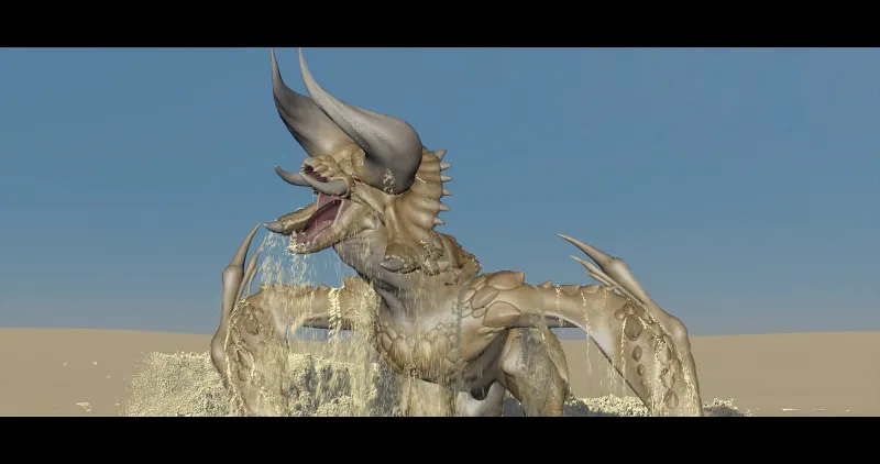 We have so much computational difficulty there that we had to do a special deal with Microsoft to use their Azure Cloud rendering service. Because we have over 15,000 processors at Mr. X and it wasn't nearly enough. And so, we had hundreds of thousands of processors in the Microsoft Azure Cloud for rendering those computationally difficult sand scenes. That broke new ground for us at Mr. X. At one point the Microsoft rep called me, "What the hell are you guys doing? What are you processing? Are you sending something to Nasa or something?" [I was like,] "Oh, it's doing these sand simulations for Monster Hunter [laughs]."