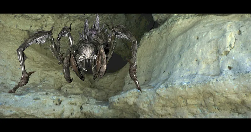 For Rathalos, we were looking mostly at larger birds of prey and how they move. Everything from hawks to eagles to falcons and scaling them up. And it doesn't always work, because Rathalos has a big, heavy center as well as these big feet, but there was reference there. Certainly for the Apceros, we looked at hippopotamus-type motion and big tortoises. They're kind of a cross between a hippopotamus and a tortoise, if you will. Slow foot plants, big heavy creatures. For the Nerscylla we obviously took a lot of inspiration from big spiders and did a lot of motion studies on that.