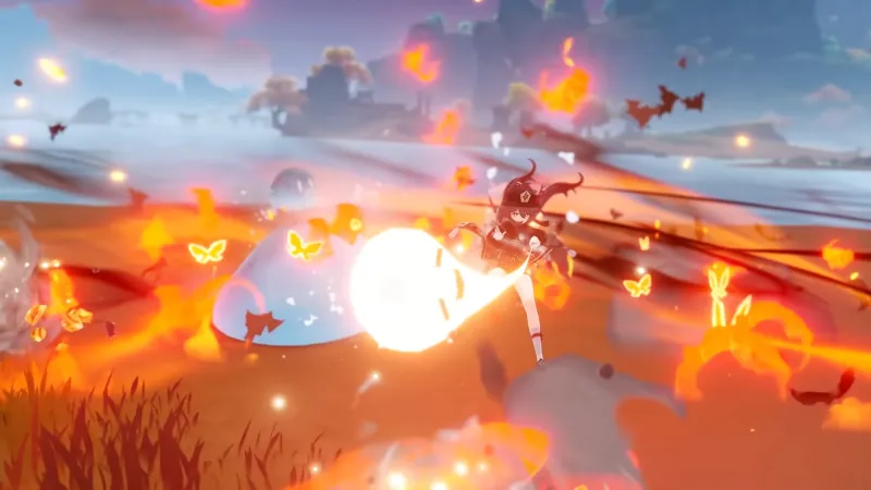 Not only can Hu Tao ride a delicate balance of risk/reward by trading hit points for power, but she has damage-over-time and party buffing capabilities as well. Hu Tao can gain significant amounts of life back after consuming it for power by utilizing her ghostly companion, the blazing spirit. If you can tank your hit points below a certain threshold, the skill is even more effective, encouraging the Hu Tao to truly flirt between life and death in order to achieve maximum efficiency. That's thematically pretty awesome, given Hu Tao's position as funeral director of Liyue.