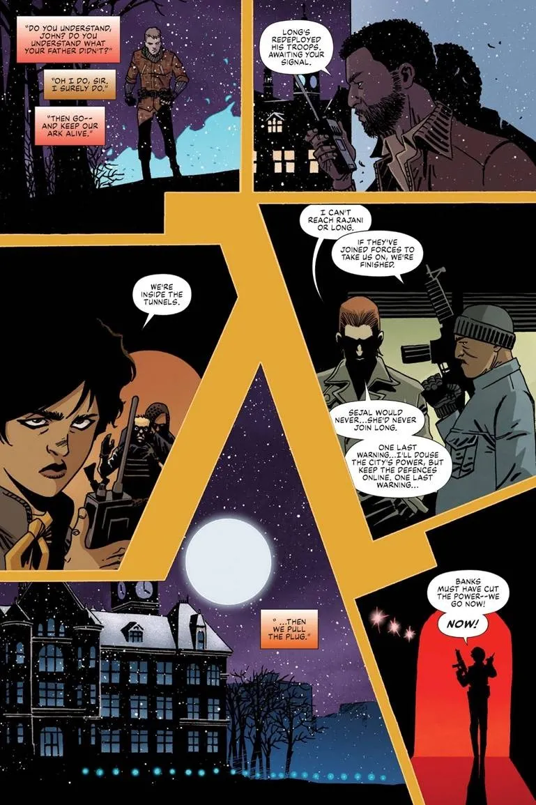 “We’re so excited by this seventh chapter,” said writer and co-creator Ross Joseph Gardner. “It officially marks the halfway point in our story, and sees the comic’s setting, New Franklin, descend into civil war. The art team has done an incredible job.”