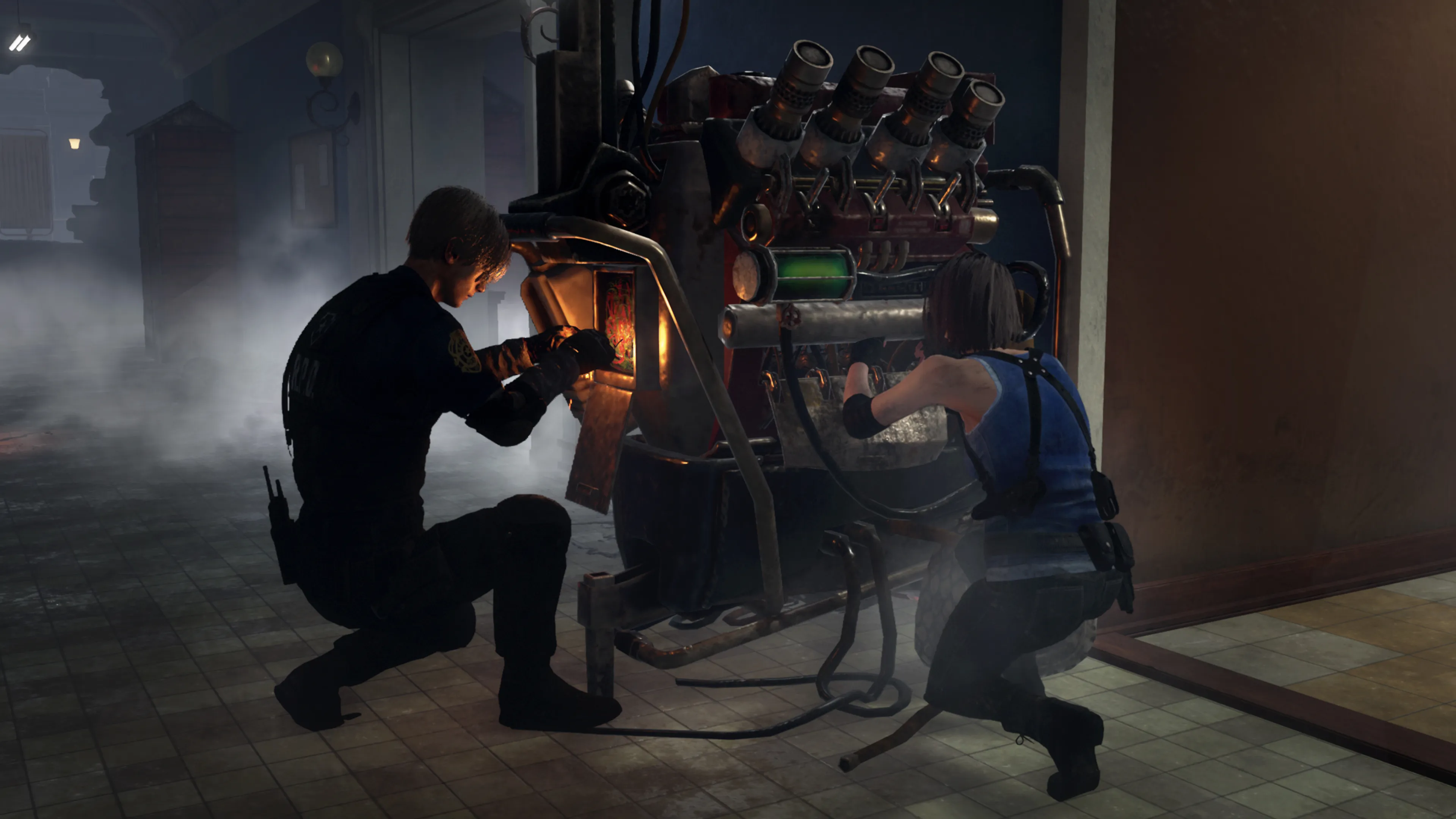 On the Killer side, Nemesis returns. He can infect Survivors with his tentacle attacks. Each infection gives him more power and longer tentacle reach. This isn't hentai, it's just his schtick. To "get better" after being infected, players can scout for vaccines hidden throughout the map, using them to continue on their mission regarding generators.