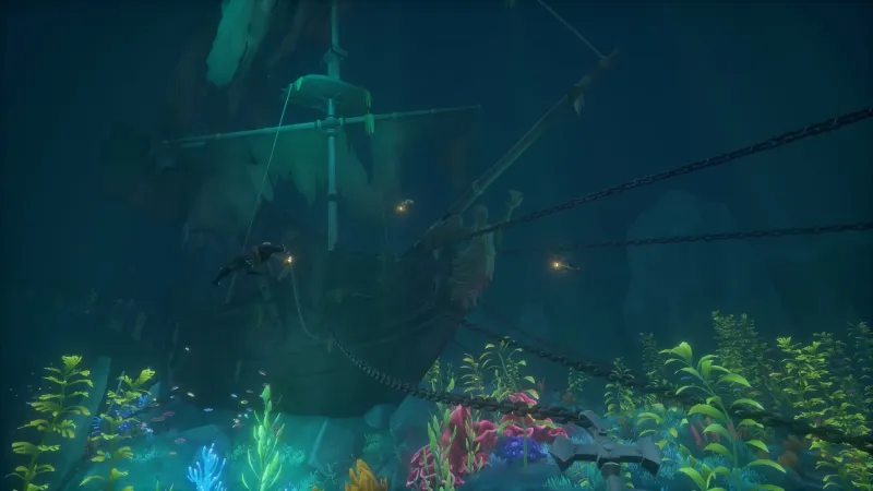 Another new area is the Sunken Kingdom, an undersea domain ruled by the sirens. They construct their homes by attaching gigantic chains to ships, then drag them under to break apart to use the salvage to build new structures. Thus, the area is littered with sunken vessels surrounding the otherwise colorful, coral covered kingdom. Unfortunately, the Black Pearl herself fell victim to the sirens, and one of the Tales tasks players with diving to below to search the Pearl in search of Jack’s trusty compass. Diving plays a larger role in A Pirate’s Life thanks to networks of underwater cave systems where players will explore deeper than ever. To facilitate that, Rare is adding air-bubble producing plants to allow players to stay under longer.