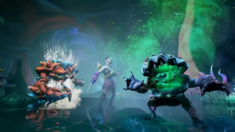 Other enemies include Ocean Crawlers, a class of crustacean-like creatures that come in several types. One is a clam-headed humanoid that can spew poison, burrow underground, and charge at players using its rock-like shell head. Crab Ocean Crawlers are hulking tanks with sturdy armor and immense strength. The electric variant may be the most dangerous. They fire lightning bolts, can quickly dash around, and generate electric shields that damage players and their teammates should they attack it. If you think you’re safe outside of the expansion, think again. Rare states that every new enemy will dynamically populate Sea of Thieves’ larger world and are not confined to A Pirate’s Life.