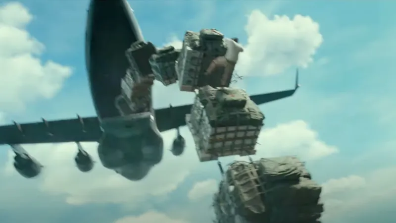 The back half of the trailer features a recreation of the iconic desert plane sequence in Uncharted 3: Drake's Deception. Just like in the game, we see Drake hanging on for dear life to cargo attached to a plane flying high above a massive desert.
