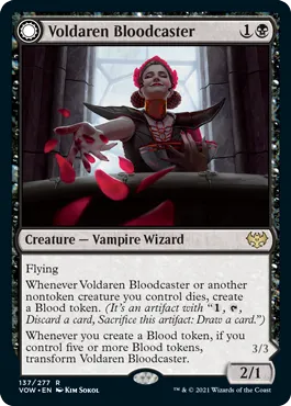 These artifact tokens fall into a similar family to Clues, Food, or Treasures. Blood Tokens are artifacts you can pay one mana for, tap, discard a card, and sacrifice the token to draw a card. Mana-wise, it’s cheaper than a clue to draw a card, though you do have to lose something from your hand. However, with many strategies in Innistrad sets, you sometimes want cards in your graveyard for grander purposes. I expect to be pitching plenty of Disturb cards into the graveyard using these Blood Tokens.