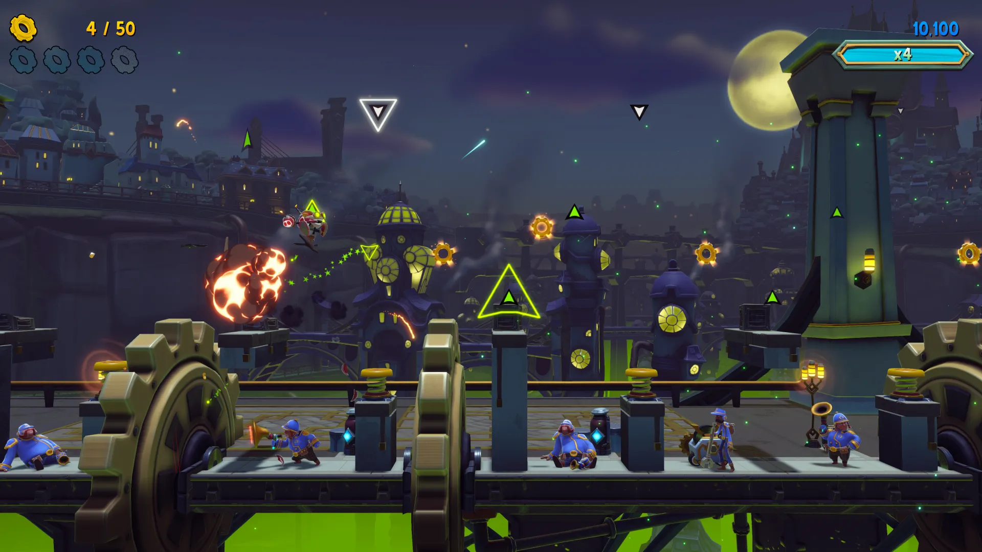 As Ziggs, you’ll “bomb to the beat,” running over floating icons that change your orientation (e.g., launch you in the air, drop you back down to the ground, etc.) across a horizontal map of Piltover while simultaneously decimating waves of foes and large-scale bosses with fiery explosions. Heimerdinger is the resident party pooper and his armed troopers and weaponized machinations stand between you and your musical escapades.