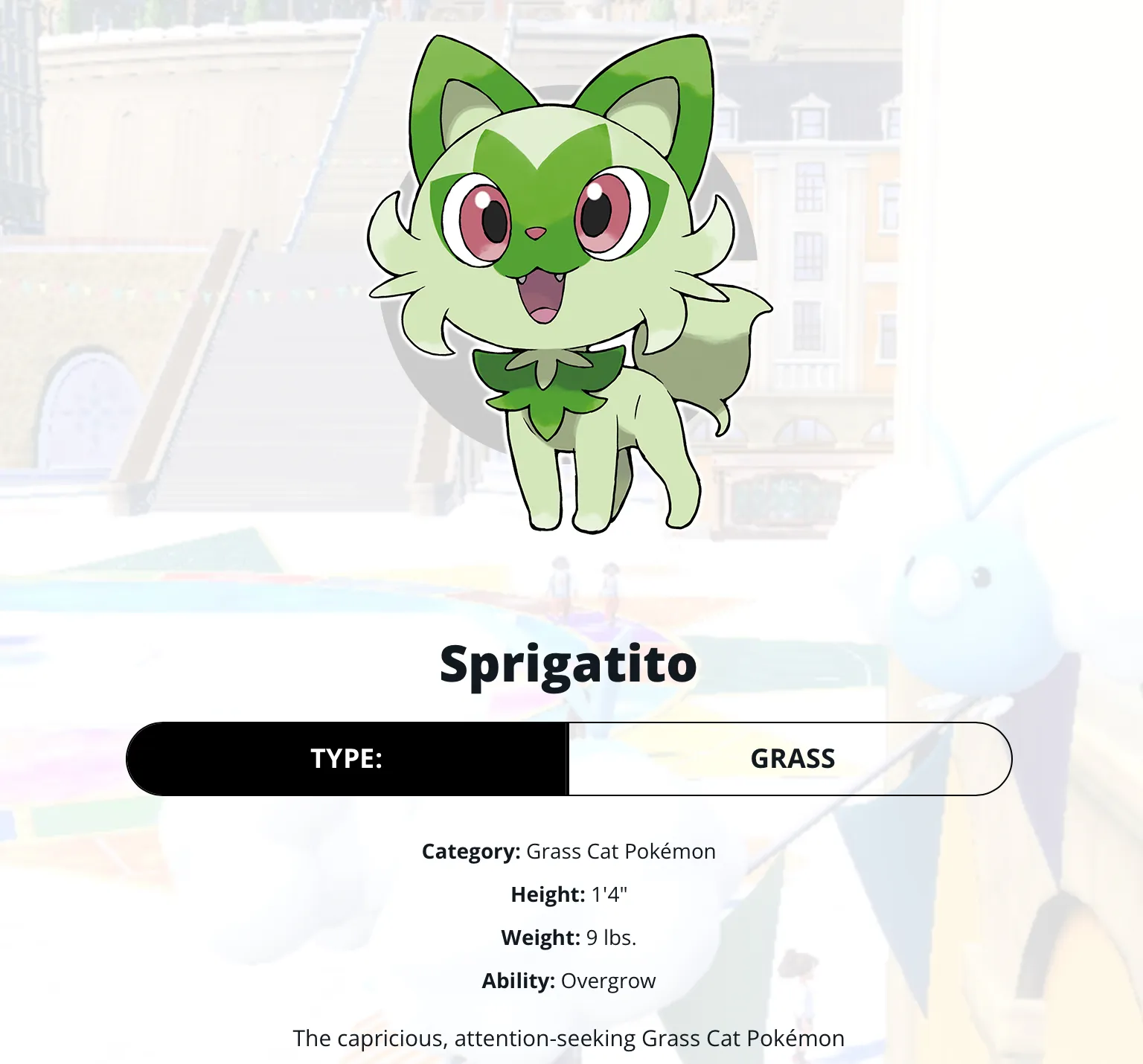 As you can see the trailer, we also received our first look at the starters: Grass-type cat Sprigatito, Fire-type croc Fuecoco, and Water-type duckling Quaxly. Here’s a better look at each, with some information about their height, category, weight, and ability.