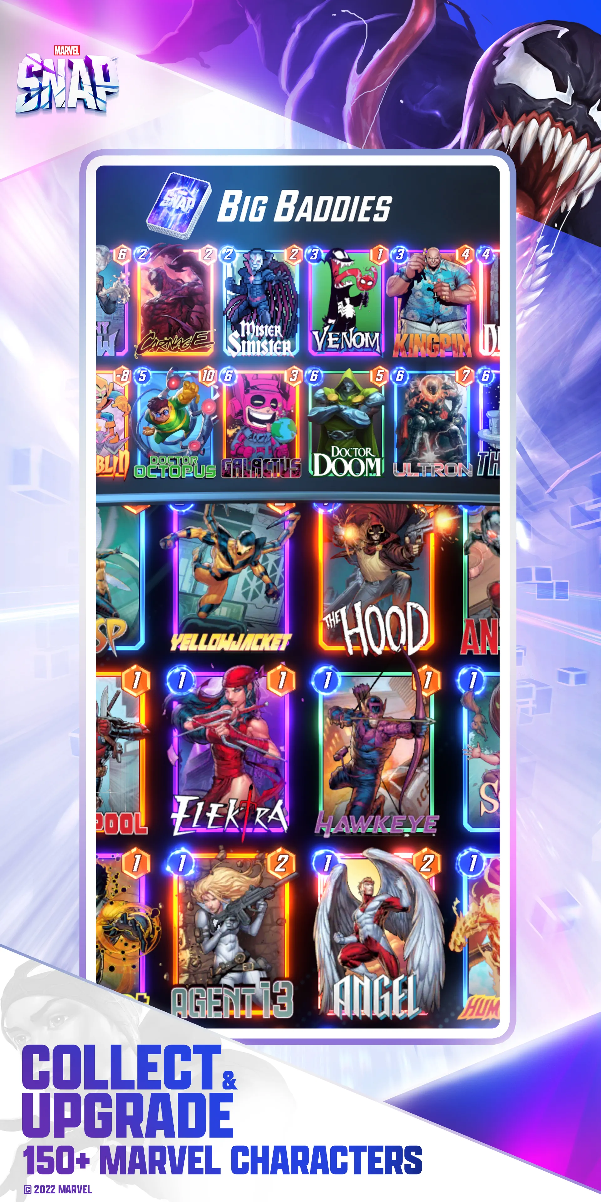 “Featuring 150+ iconic Marvel characters, Marvel Snap brings together stunning art from Marvel’s rich 80-year history with beautiful, brand new original illustrations to deliver hundreds of collectible art pieces in an intense player vs. player (PVP) fast-paced CCG,” a press release reads. “Marvel Snap introduces a new way to compete for the highest ranks, allowing players to ‘Snap’ to raise the stakes and double down. The mind games and bluffing inherent in this innovative mechanic create a game that is truly impossible to master.”