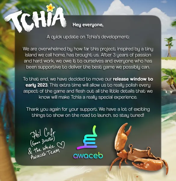 Developer Awaceb posted an update on Twitter explaining that it needs to delay the game to tinker on it further, saying in part “this extra time will allow us to really polish every aspect of the game and flesh out all the little details that we know will make Tchia a really special experience.”
