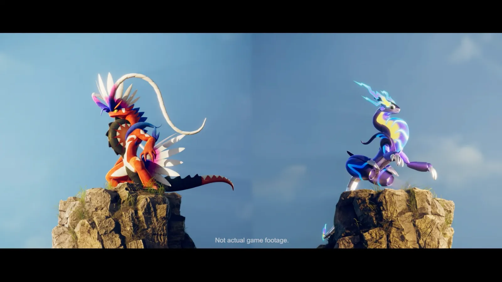 The trailer concludes with the reveal of this generation's two primary legendaries: Karaidon, the red dragon-looking Pokémon that will reside on the box art of Scarlet, and Maraidon, the purple dragon-looking Pokémon that will reside on the box art for Violet. Both appear to live off the coast of this region, high atop some cliffs in the ocean.