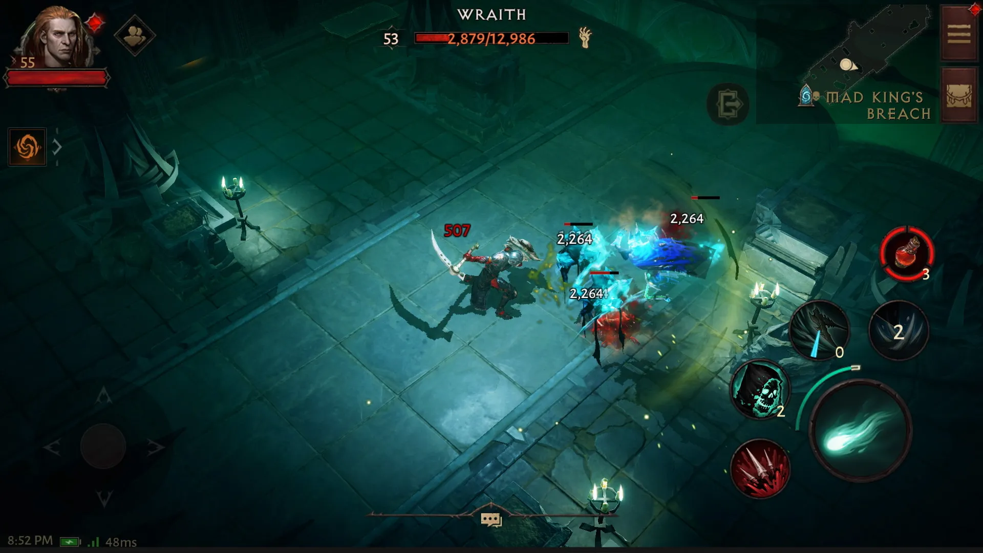 Much of Diablo Immortal is designed to look, sound, and feel like Diablo 3, and in my time leveling a Crusader, it nails those lofty expectations effortlessly. Never once during my time slaying the minions of evil have I felt like this was a reskin of another mobile game, imposter using the Diablo name, or that it falls short in what feels like a Diablo game. From the impact of weapons to the fluidity and intuitiveness of using skills, Immortal feels like a real deal Diablo experience. Its responsive controls have some of the best feeling virtual analog sticks and buttons I've used in a mobile game. As is a common setup for mobile action games, your main attack is the largest button displayed on the bottom right corner of the screen, with four additional abilities fanned out around it. Pressing one of these special abilities often causes a reticle or an area of effect indicator to appear on the ground. Holding and sliding my thumb in any direction around that button aims my chosen implementation of devastation in a natural way. You can make some adjustments to this system in the settings, but I found the stock setup to be just right for me.