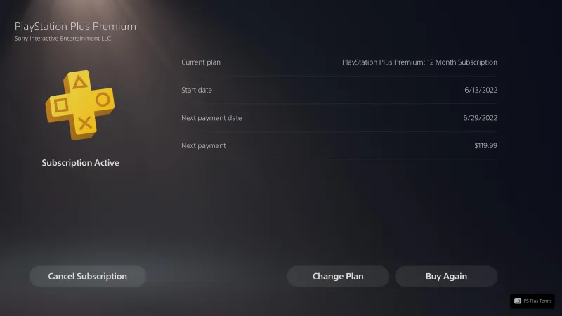 Upgrading is fairly painless but will require a prorated upcharge to join the new Extra or Premium plans of PlayStation Plus. To do so, go to your PS+ tab on your PlayStation console. There, you'll find an option to upgrade. On PS5, it showed each tier and how much money it would cost to upgrade for the remainder of the month, which for most should only be a few dollars. Upon upgrading, it will tell you your next payment date and that it will charge you for a full-year subscription on that day. Don't panic. There is a way to change your subscription type.