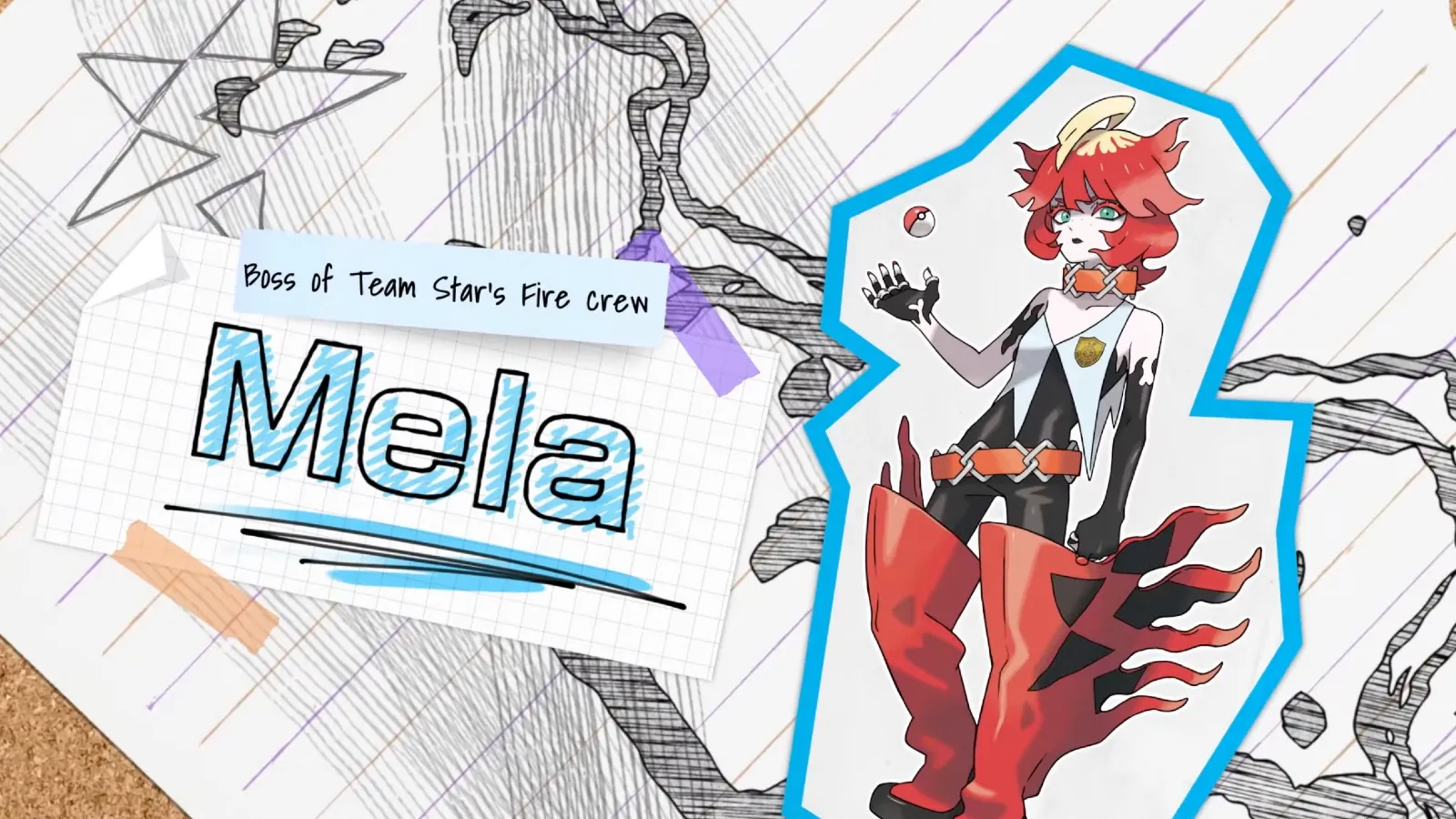 As you can see, the trailer begins by introducing us to Starfall Street, which is where you'll be able to face off against unruly students. Those youths are likely a part of Team Star, the local school troublemakers. This team seems to be categorized by type because as the trailer progresses, we meet Mela, the boss of "Team Star's Fire Crew." Presumably, there's at least a Water Crew and a Grass Crew as well.