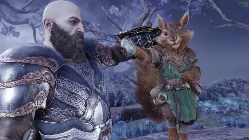 Ratatoskr technically appeared in God of War (2018), but he was less of a character and more of an ability. Atreus could summon the translucent blue squirrel to bring health items and sometimes hacksilver. In God of War Ragnarök, Ratatoskr is a physical, non-translucent character with dialogue, requests, and an introductory cutscene. He is also, arguably, the most unexpected character in the game.