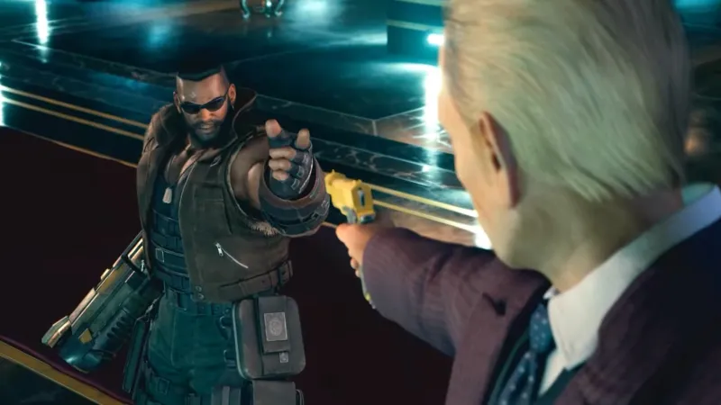 That’s the conclusion I drew after playing through most of Final Fantasy VII Remake, but then, near the end, President Shinra threw my hypothesis into the trash. I won’t go into detail to avoid spoilers, but President Shinra has his back against the wall at one point. He’s scared and trying to negotiate for his life with Barret, who I will remind you has a gun for a right hand. And then suddenly, after running to his desk, his confidence inexplicably returns. He is no longer negotiating for his life, but instead insulting Barret’s noble cause because… surprise! He has a gun. And he’s pointing it right at Barret.