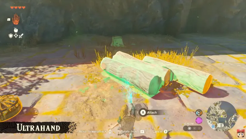 Aonuma's discussion about fuse transitioned nicely into one of the new features in Tears of the Kingdom: vehicle creation or something that appears to be called "Ultrahand." While creative players created all kinds of "vehicles" in Breath of the Wild, it seems Tears of the Kingdom's Ultrahand will help us all create new ways to get around Hyrule's plains, rivers, and more. In this instance, Aomuna creates a boat to cross a body of water.
