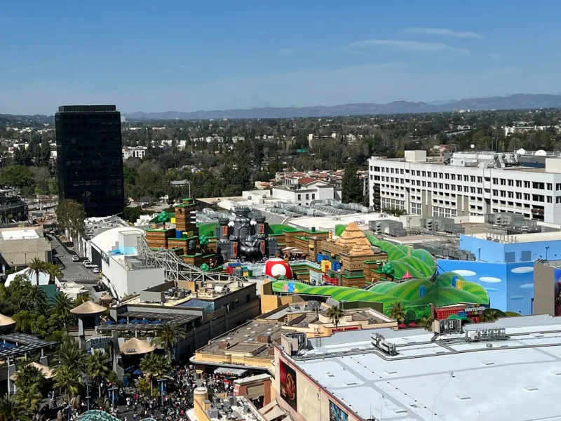 The silver lining is that, unlike the version in Osaka, you actually get a good view of the Hollywood version of the park from above. Though I would eventually get an up-close view of the various sights on offer, seeing Super Nintendo World from this birds-eye view successfully whetted my appetite for the exploration to come.