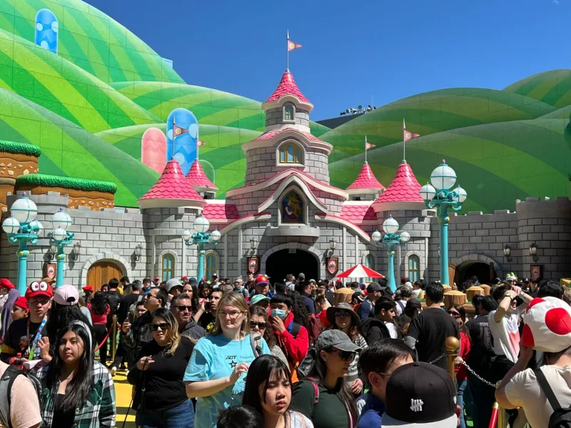 I arrived at Universal Studios Hollywood mid-morning and immediately made a beeline toward Super Nintendo World. The park is in the back corner, by attractions themed after Jurassic World, The Mummy, and Transformers. To get there, you need to take a series of long, steep escalators on the other side of the Simpsons area. The Super Nintendo World portion of the park feels way out of the way.