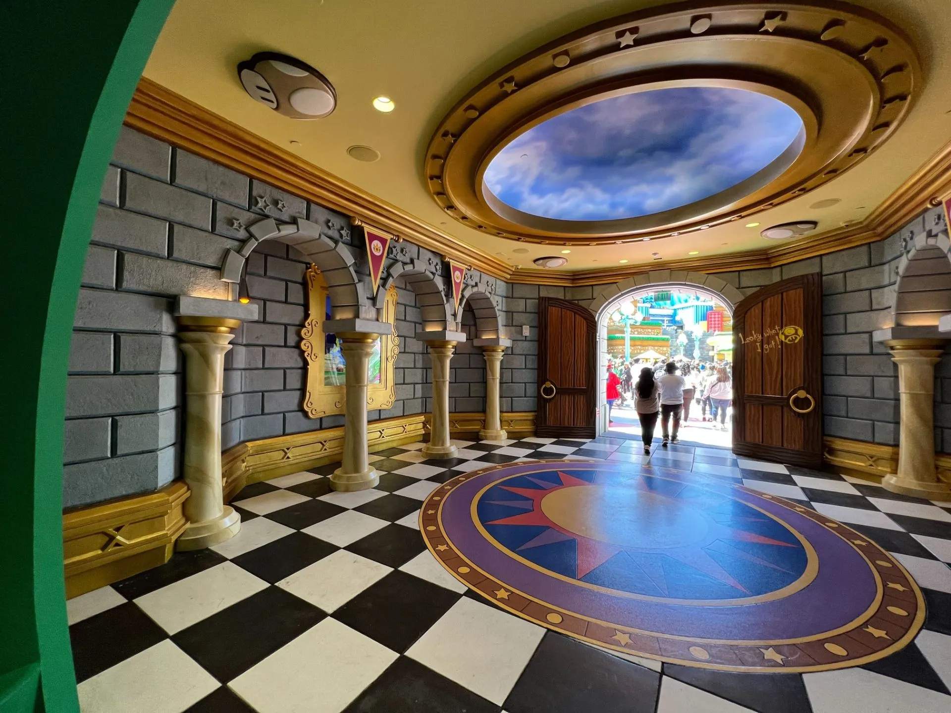 After the obligatory photo opp, you can go through the giant warp pipe to Peach's Castle. Both the pipe length and the lobby area of Peach's Castle are smaller than the versions in Universal Studios Japan, which somewhat set the tone for the rest of my experience in Super Nintendo World at Universal Studios Hollywood.