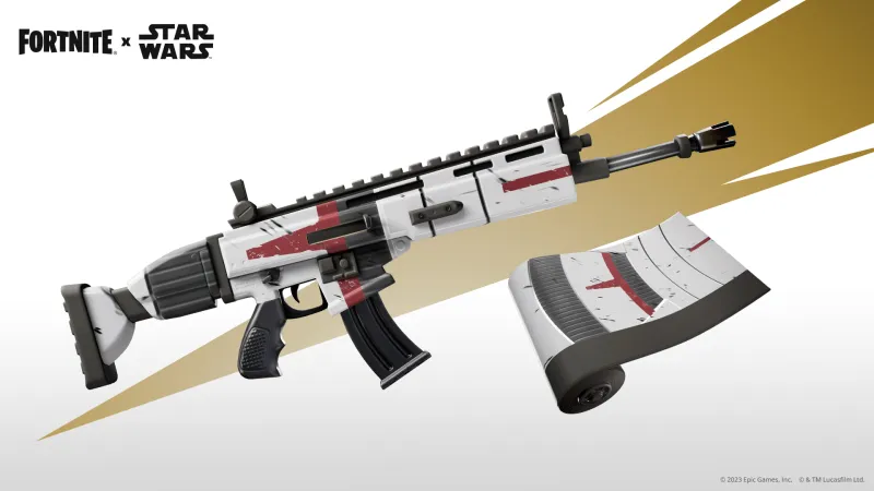 Alongside the new Clone Trooper Outfit, the DC-15 Blaster has been added to the weapon rotation on Fortnite's Battle Island. You can obtain it from Republic Chests scattered around the island and it's an assault rifle with high accuracy that excels at medium-to-long-range combat.