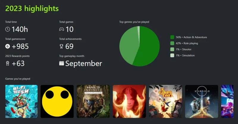 Following Sony's lead, Microsoft has published its yearly retrospective as well, allowing Xbox and PlayStation fans alike to take a look back at the games they played this year. You can check out the Xbox Year In Review right here. For an idea of what to expect, here are some of my stats:
