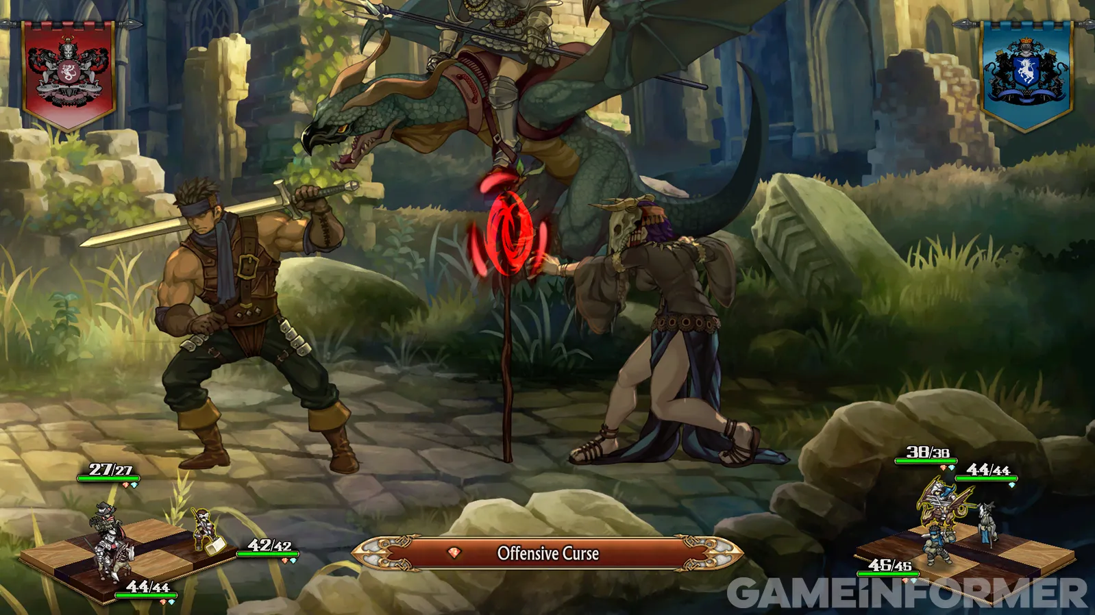 Once an encounter begins, either by your own unit running into an enemy or vice versa, an initiative order determines when combatants attack, and the entire battle continues until the enemy (or you) are defeated or all combatants run out of action points. In the latter scenario, the side with the most health remaining claims victory. The more of it I see, the more I appreciate its cinematic approach – I, the player, set the pieces onto the board and then watch the strategic planning (or chaos) pay off, hopefully in a win. Nakanishi says the draw of this type of gameplay is immersion.