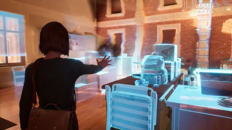 In terms of gameplay, Max has lost her original time-rewind power. Instead, she can instantaneously swap timelines in certain spots to explore two versions of the same space. She’ll use this power to solve puzzles and circumnavigate inaccessible spaces (for example, a locked door in one timeline may be unlocked—or Max learns how to unlock it—in the other one). She can also use a “pulse” ability to extend her supernatural senses to determine weak points between the timelines, allowing her to see and hear ghostly glimpses of people and objects in the alternate reality without Shifting to it. Using this, she can eavesdrop on characters in the other timeline for intel and stealthily track suspects.