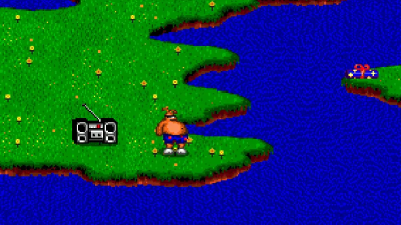 The offbeat Sega Genesis game definitely leaves an impression. Titular characters ToeJam and Earl, alien teenage rappers from a musical planet dubbed Funkotron, crash land on Earth. In each island world, our two red and orange heroes amble about, avoiding hostile humans while picking up pieces of their ship in the hopes of ditching Earth and getting back to their homeland. “I thought it would be really fun to flip things on its head and do some satire. [ToeJam and Earl are] the sane ones. They’re cool and funky. It’s the Earthlings who are the crazy ones in this insane world,” Johnson says.