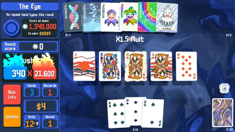 To play Balatro is to obsess over Balatro. A single run of this brilliant poker-themed roguelike can quickly turn into several. Minutes melt into an hour or more as your score multiplies into the hundreds of thousands with each carefully constructed hand played. Nothing beats the rush of watching your synergized lineup of Joker cards pop off effects in succession to shatter a round's score quota, making you feel unstoppable as the meter erupts into flames. That is, until you hit a boss blind sporting a debilitating stipulation that unravels your entire strategy. But even these crushing defeats do little to dampen the enthusiasm to start runs anew.