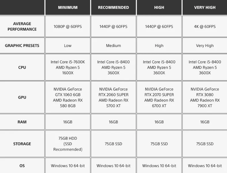 The PC port will also include DualSense controller support, full haptic feedback, adaptive trigger features, and full user key customization for gamepads, keyboards, and mice.