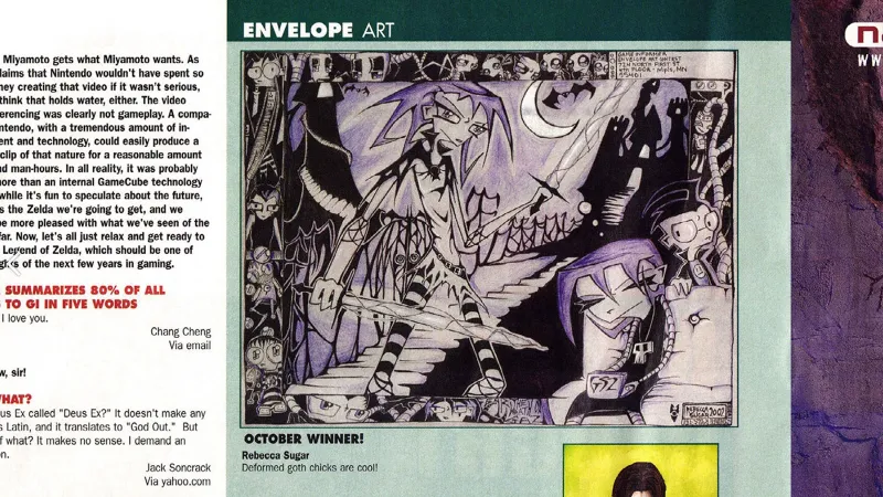 Back in 2002, in the Devil May Cry 2 issue of Game Informer magazine (which you can read right here for free if you have an account on our website), we featured a piece of Invader Zim fan art in the Envelope Art section. We declared it the October winner and confusingly wrote, "Deformed goth chicks are cool!" as its caption. Recently, Bluesky user @drewchuck.bsky.social, while looking through Video Game History Foundation's impressive archive of video game magazines, noticed the art was attributed to Rebecca Sugar. Rebecca Sugar is not a common name, but we suspected it might just be a coincidence, so we reached out to confirm if it was them.
