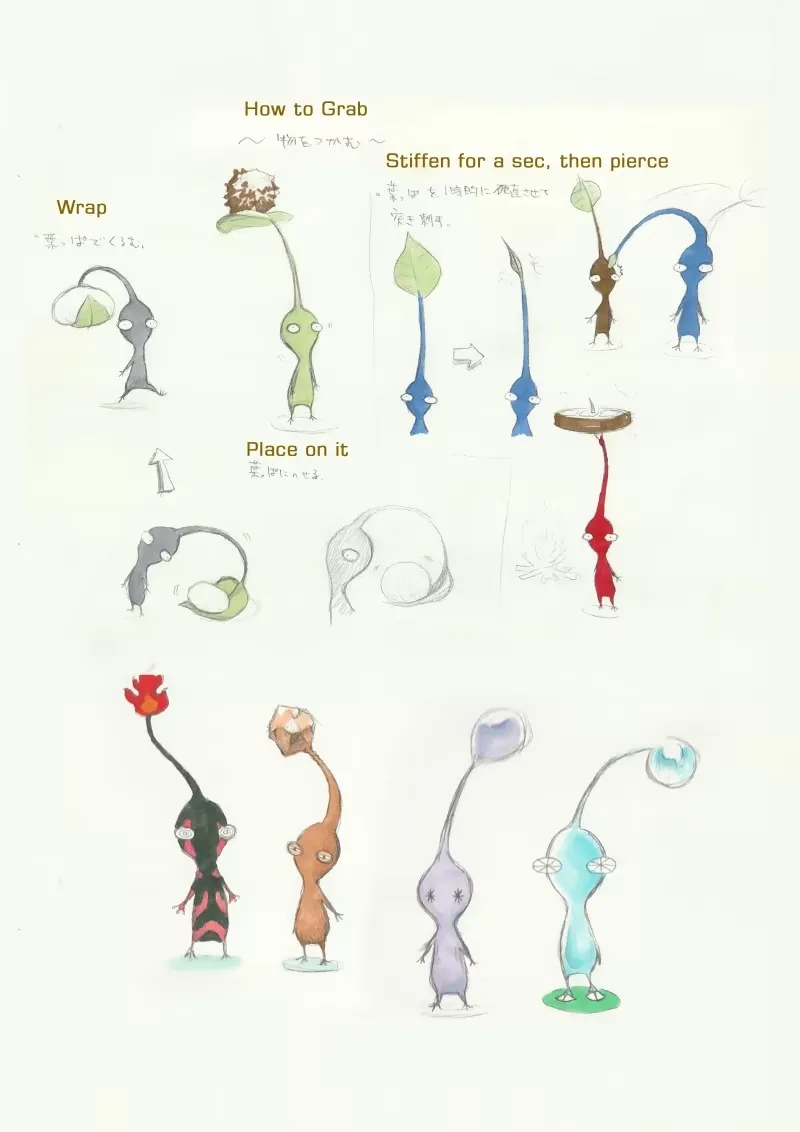 Hiramuki: Olimar also mentions this in the game, but it may be that the idea of Pikmin being allies is just a convenient assumption, when in actuality, us humans (the players) are the ones being played by them.