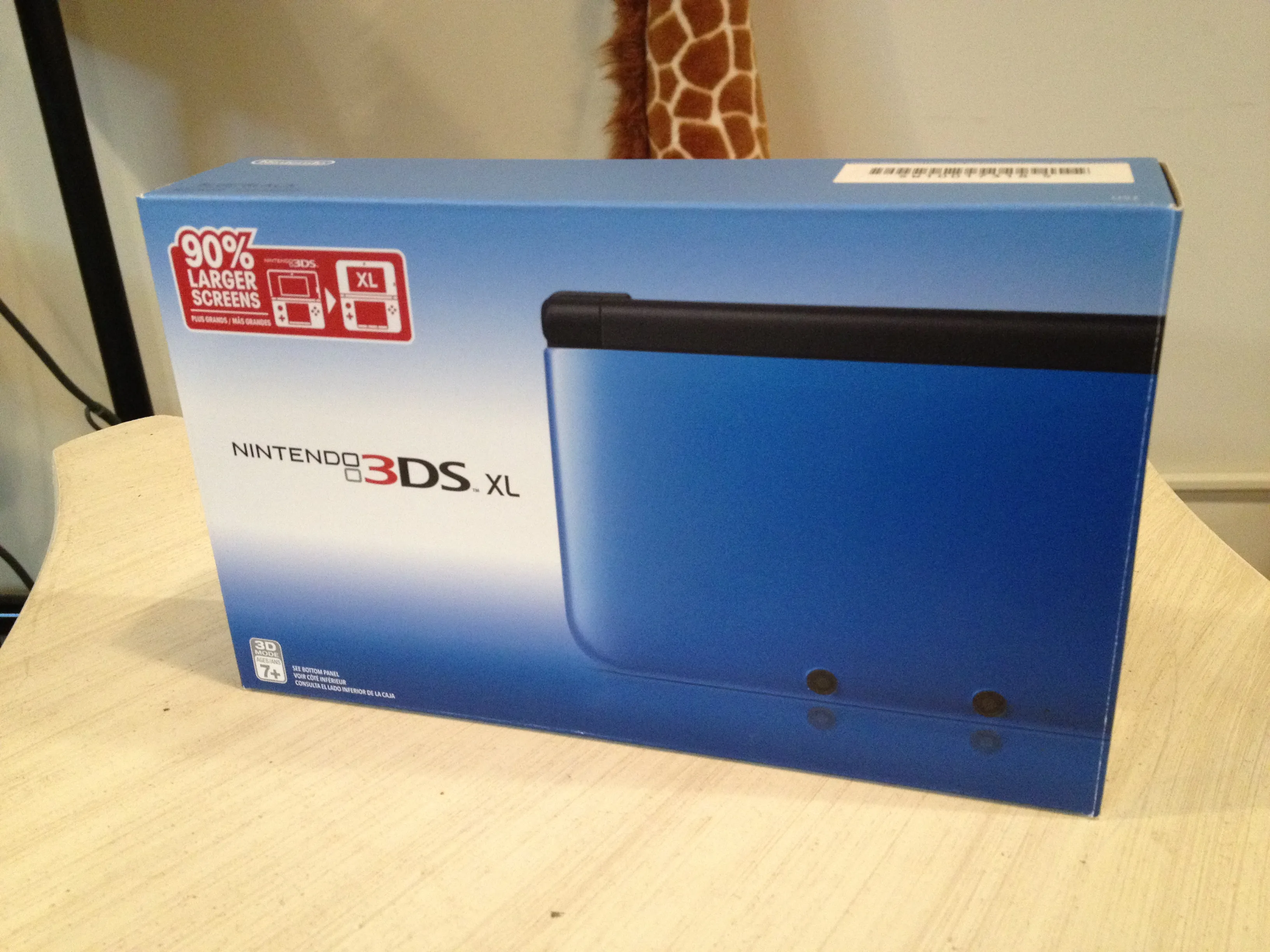 We've got a 3DS XL in the office, and we snapped a bunch of pictures of it next to other handhelds for all your comparison needs. First up, a comparison of the box. The system may be larger than the original model 3DS, but Nintendo has been able to use their collective Tetris skills to make everything more compact.