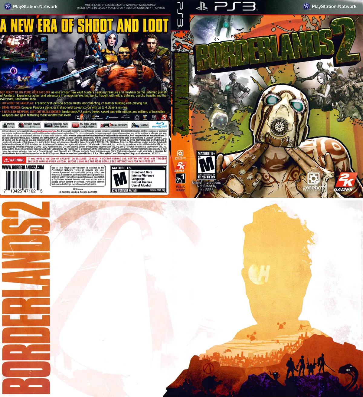 Borderlands 2's original cover art plays with the concept established with the first game cover, but doubles it because it's a sequel, and that needs to happen. The alternative cover art makes the world of Pandora seem more oppressive, especially with Handsome Jack's silhouette looming over everything.