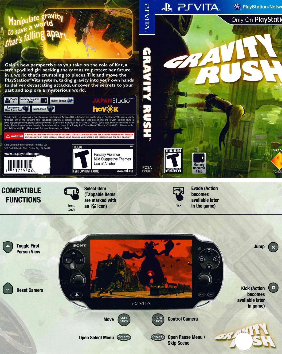 Gravity Rush has an awesome art-direction, and it is actually highlighted pretty well on the front cover. The alternative cover, however, is a picture of a Vita. It's as if it was included as more of a helpful cheat sheet rather than an attempt to make an interesting alternative cover!