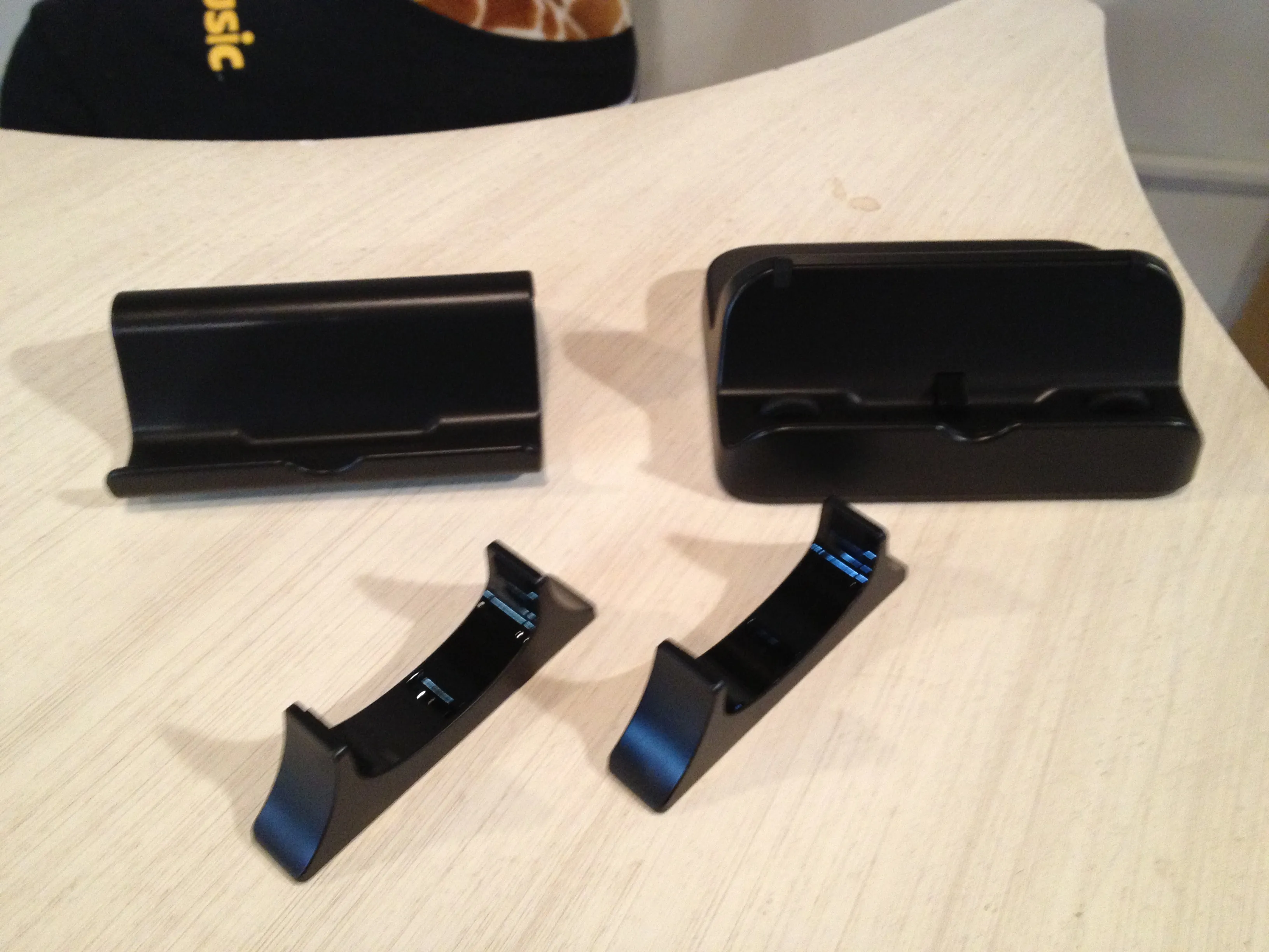 This bundle comes with a charging stand, and a non-charging stand for the tablet controller. The two things up front hold up the Wii U console.