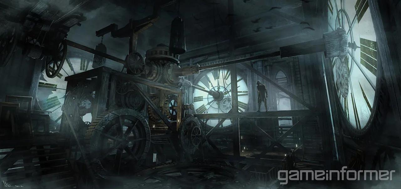 Above is a look at Garrett's hideout in the top of a clock tower, which is a great example of the team's take on steampunk. "The art style of steampunk is golden and wood -- see Wild Wild West with Will Smith," Cantin explains. "It's something we really want to get rid of. We're really more about rusty stuff where you see the welding."