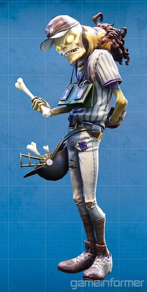 Fortnite's pitcher husk serves as a basic projectile enemy type, albeit with a tongue-in-cheek twist. These sporty foes carry a baseball helmet full of bones, which they throw at players and structures to deal long-range damage.