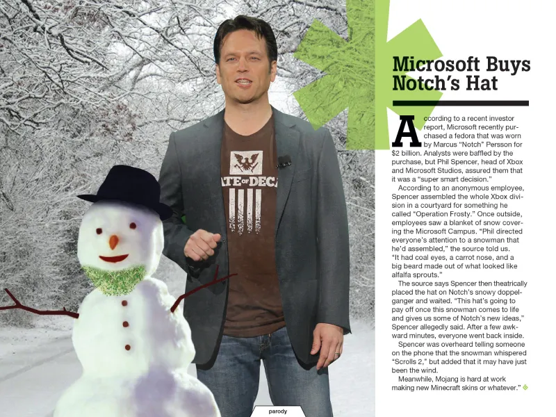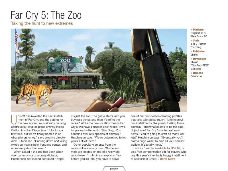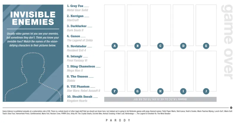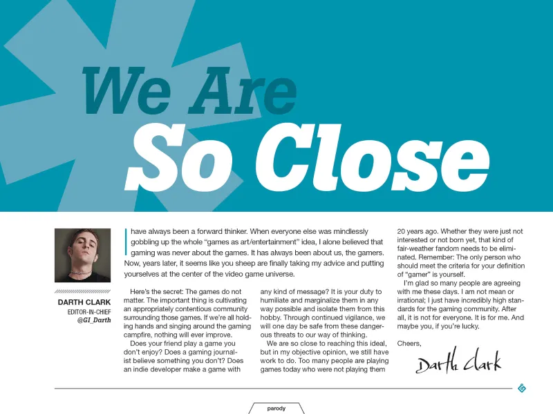 We have a yearly April Fools tradition here at Game Informer: We include a multi-page parody magazine called Game Infarcer in our April issue. It's full of fake news and games, and even helmed by a fictional editor-in-chief. In the past, it's been exclusive to our magazine, but this year, we're posting the whole feature for our online community to enjoy.