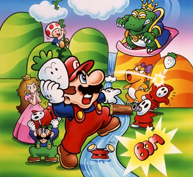 Super Mario Bros. inspired a direct sequel in Japan just a year later. The Japanese version of Super Mario Bros. 2 used many of the same assets and ideas from the original, but that version didn’t make it to the United States. Instead, Nintendo released a modified version of a different game – one from the Famicom Disk System, a Japan-only accessory that allowed the original Famicom to play games off floppy disks instead of cartridges. The game, Yume Kōjō: Doki Doki Panic, was rebranded with Mario, Luigi, Toad, and Princess Toadstool as playable characters.