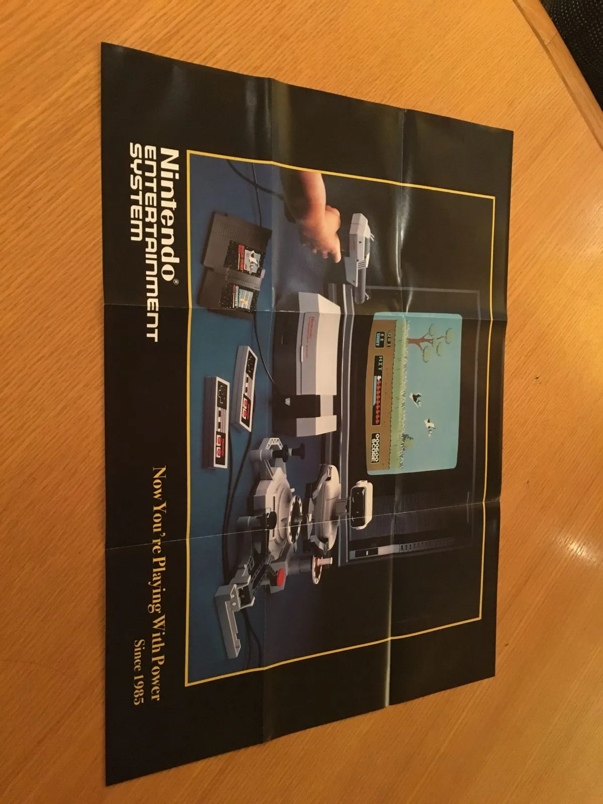The instruction manual unfolds to double as a classic poster, showing off a number of things that are not included in the box, like R.O.B. the robot, an extra controller, or an NES Zapper.
