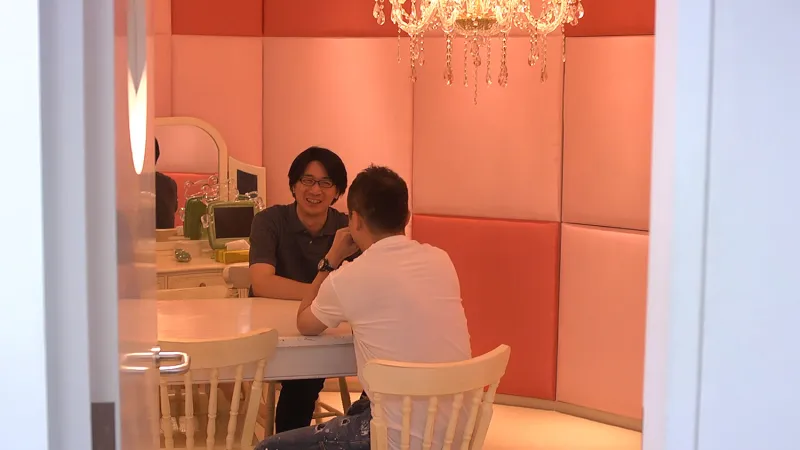 The development floor is open with few sectioned-off offices, and Pokémon plushies are scattered everywhere. Masuda shows us the meeting rooms, each one specially designed by the staff. The Gaia room has a large fish tank and is covered with plants, which the staff takes care of themselves. Masuda says the staff tends to them as a way to remind everyone about the long-term rewards of incremental work. “It’s just like making a video game,” he says. The nearby Saturn room is filled with mirrors that draw your attention to a large television. This room is used when they need to present something on screen.