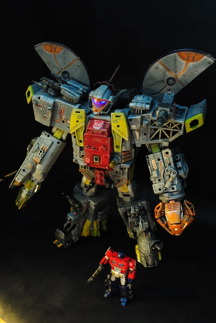 The figure, which has been listed for $3,000, would surely be the crowning jewel of any Transformers collection. Omega Supreme has long been regarded by Transformers fans as one of the coolest characters and toys in the franchise. In cartoons, comics, and toy lines, Omega Supreme always appears in some variation of a massive guardian warrior. Customizer uuser adds his own thoughts regarding his inspiration for this truly awesome custom toy: "For me, Omega Supreme is a silent, faithful, and invincible warrior from ancient time. To emphasize this, I put some tattoos on his 'wings' using cybertron words."