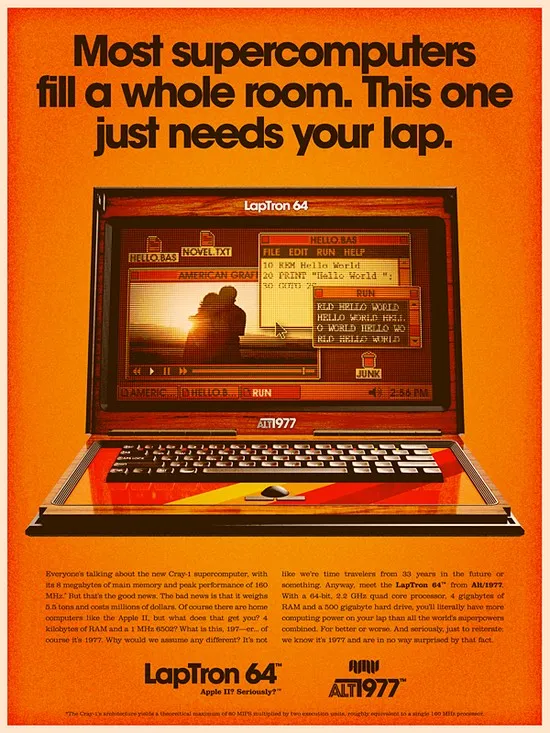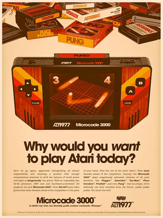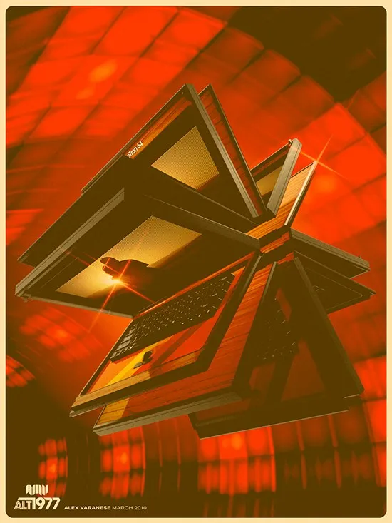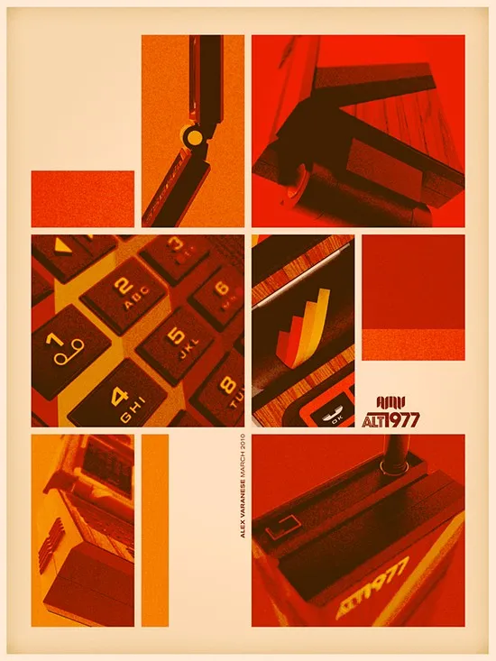 Visual artist Alex Varanese has an awesome, retro style to his work. The Bay Area creator has done some fantastic stuff but his retro Alt77 technology posters may be his best work yet. Imagine if you will, the '70s never left, but the ideas of today still happened. I think the marketing would look something like the posters in the gallery below. Alex’s attention to the days of the Atari are nothing short of dead-on.