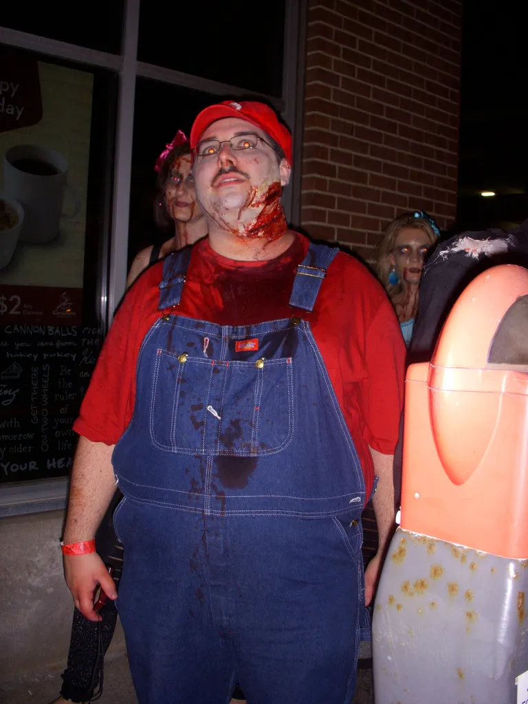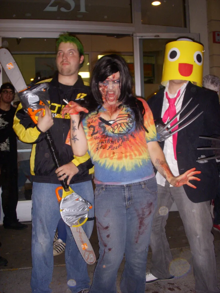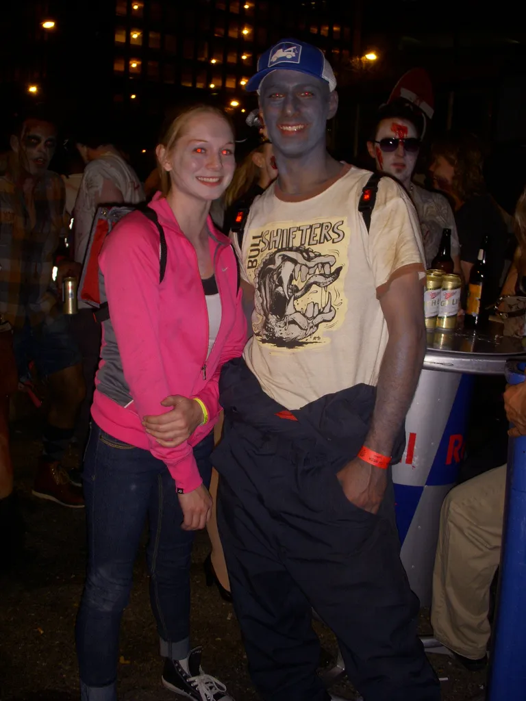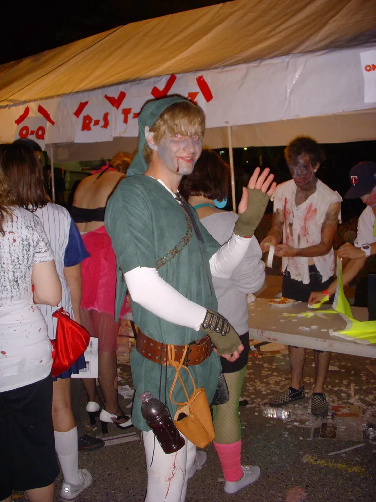 As for ourselves, we decided to go against the grain and dress as various zombie exterminators. Annette – armed with a makeshift Molotov – stepped into the sneakers of Zoey from Left 4 Dead. She decided to don the slightly altered ensemble from the original L4D concept art. I opted for the obscure, dressing as Resident Evil 5’s Excella Gionne. Only a handful of lucid zombies seemed to know who I was, but I’ll take quality over quantity. Ben’s Dead Rising tribute went over really well, although anyone who recognized him seemed indecisive about whether he was Chuck Green or Frank West. By the end of the night he willingly accepted the moniker of either protagonist, in addition to “LEGO man,” “Lego Wolverine,” and “Wolverine Pac-Man.”