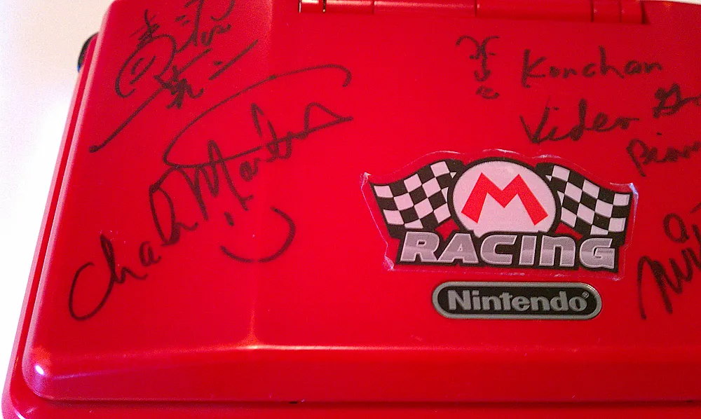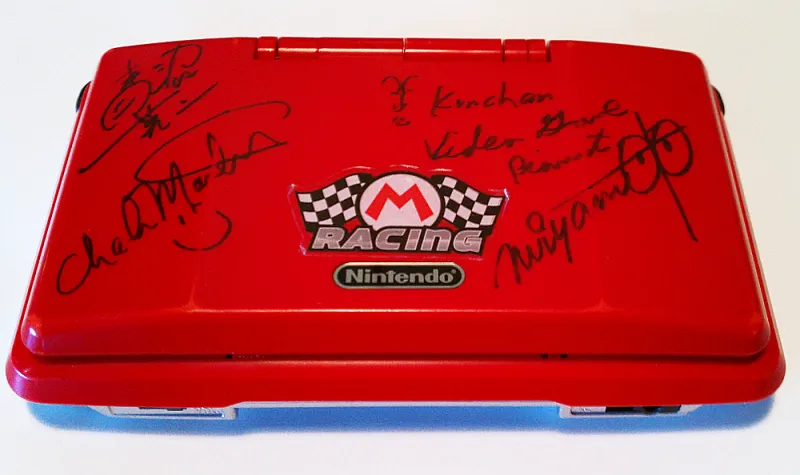 keepsake, an autographed Nintendo DS signed by some of the biggest names