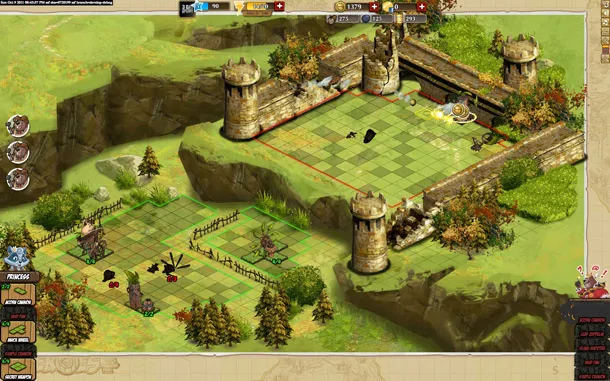 The game is set up a little like the board game Battleship. You play as the peace loving raccoons as they try to eliminate the bear menace that has moved into their land. This is done by collecting materials and money to build assorted catapults and weapons that can be used as offensive deterrents on a grid-based battlefield. You take turns firing your weapons into the bear’s territory selecting grid spaces in hopes that you will find where their weapons are hidden. More expensive weapons mean a larger grid area to attack, and a higher possibility of hitting your enemy.