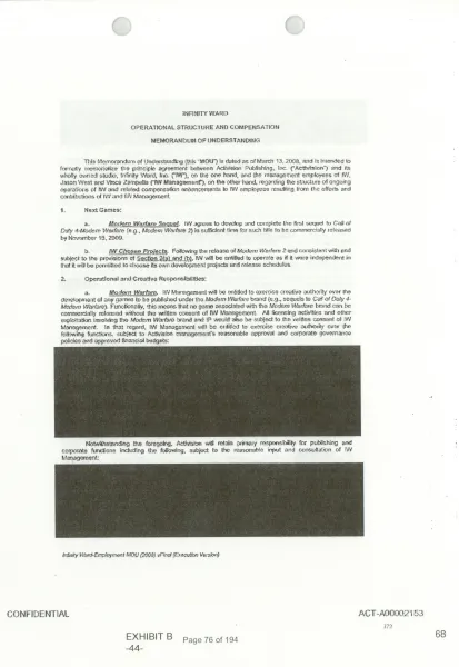 Treyarch’s Black Ops II marks the series’ first move into the future, but it also raises questions about the ongoing relationship between Activision and Infinity Ward. Over two years ago, details regarding the lawsuit began to appear publicly. One such detail stated that Call of Duty titles set after Vietnam would be exclusive to Infinity Ward. We recently obtained some court documents (which you can see below), and it appears that this clause was indeed included in Infinity Ward’s Memorandum of Understanding (MOU).