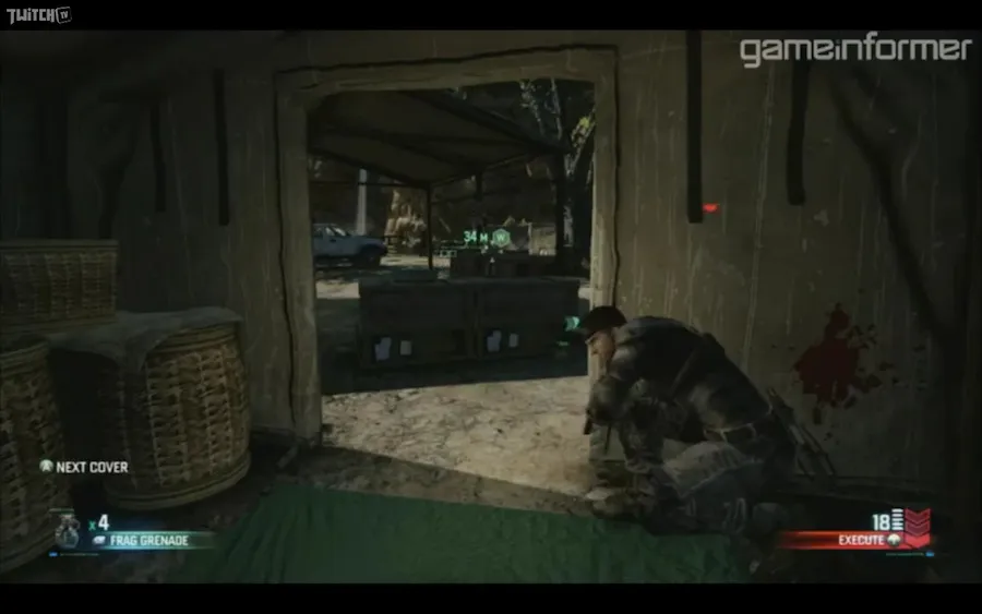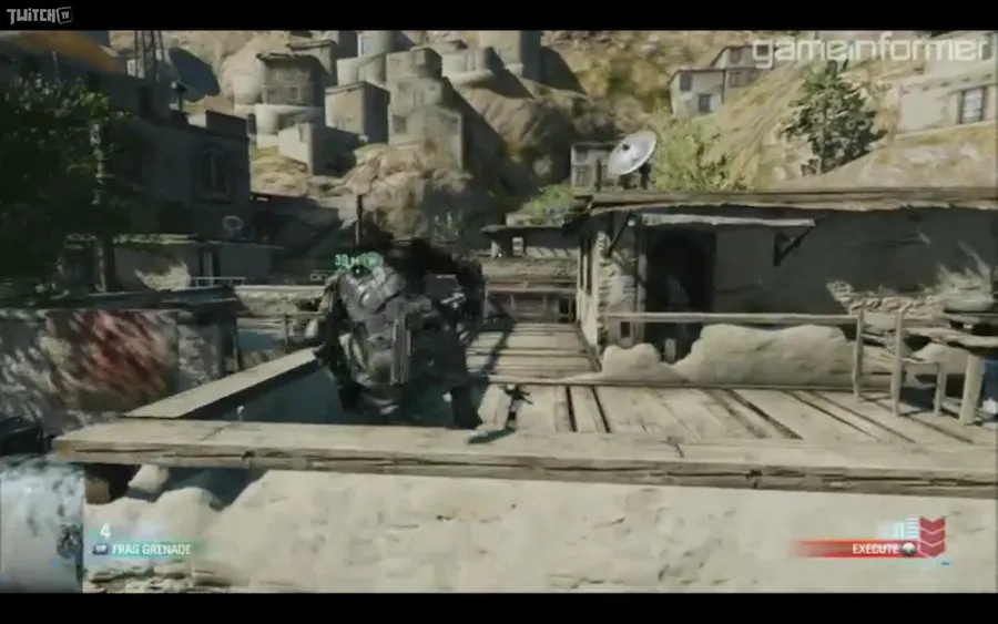 The only threat left is the truck-mounted machine gun, which shoots a stream of bullets at Sam as he runs through an abandoned home, smashing through the front door on the way in and seamlessly jumping through a window on the way out. It wouldn’t be a Microsoft demo if Splinter Cell Blacklist didn’t utilize Kinect in some trivial way, and on cue the Ubisoft rep calls in a missile to blow up the truck with a voice command. A quick door breach and a few more slow-motion kills are the only thing that stands between Sam and his target.